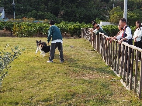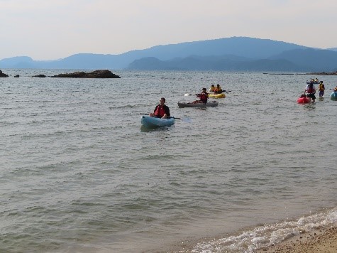 船から降りると受け入れ家庭の皆様方がお出迎えしてくれました。 28班に分かれ、カヤック・みかんの収穫・釣りなど、島ならではの体験をしました。