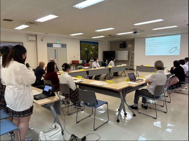 昨年度地域探究コースで行った「地場産業への気候変動影響調査」と 今年度2年生が行った「メダカから考えるSDGs」の取り組みについて発表しました。