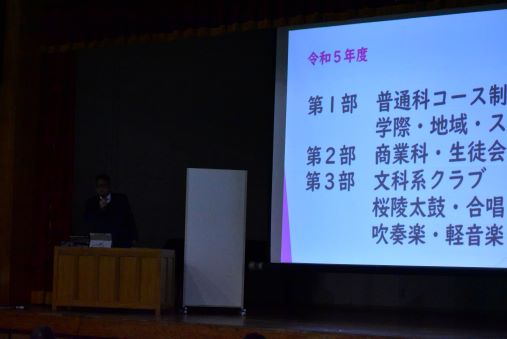 「桜陵太鼓部」「吹奏楽部」「合唱部」「ダンス部」「軽音楽部」が日頃の活動を発表しました。