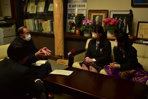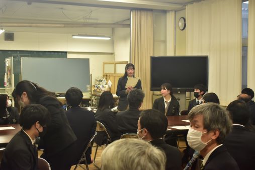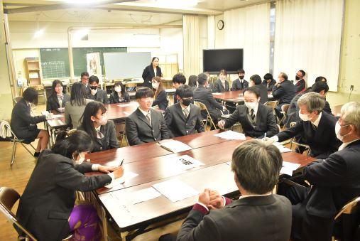 招待者と代表生徒、職員が「よりよい辰高づくり」をテーマに意見交換しました。