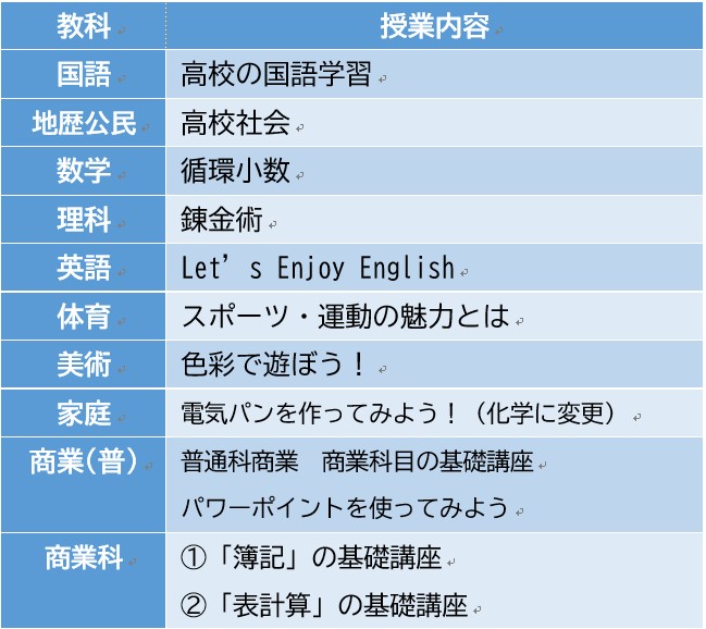 令和6年度体験入学を実施しました。 昨年を大幅に上回る約250名の中学生から申し込みがありました。 それぞれ事前に選択した授業を受けたり、部活動を見学したりして、辰野高校を体験していただきました。 中学生の皆さんお疲れさまでした。