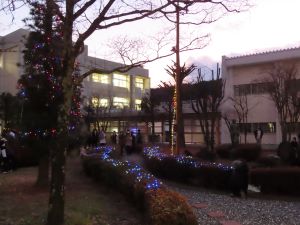 クリスマスイルミネーションの点灯式が行われました。 生徒会執行部が、少しでも楽しい気持ちになれるようにと計画し、装飾してくれました。暗くなると本当にきれいです。生徒会の皆さんありがとうございました。 ブログ 学校行事 第2回生徒研究会 生徒自ら行う環境整備事業 関連記事 【商業科】長野県高校生探Qフェスティバル 2025-12-14 【商業科】ドローンプログラミング・画像加工とレーザー彫刻 2025-11-28 【学際探究コース】制服リユースプロジェクト 2025-11-15 【商業科】ホテル・旅館の仕事を知ろう 2025-10-31 桜陵祭 2025-07-13 春季クラスマッチ 2025-06-13 【学際探究コース】長野ビジネスカレッジ 留学生との交流 2025-06-09 【地域探究コース】岡谷シルクミュージアムの見学 2025-05-27
